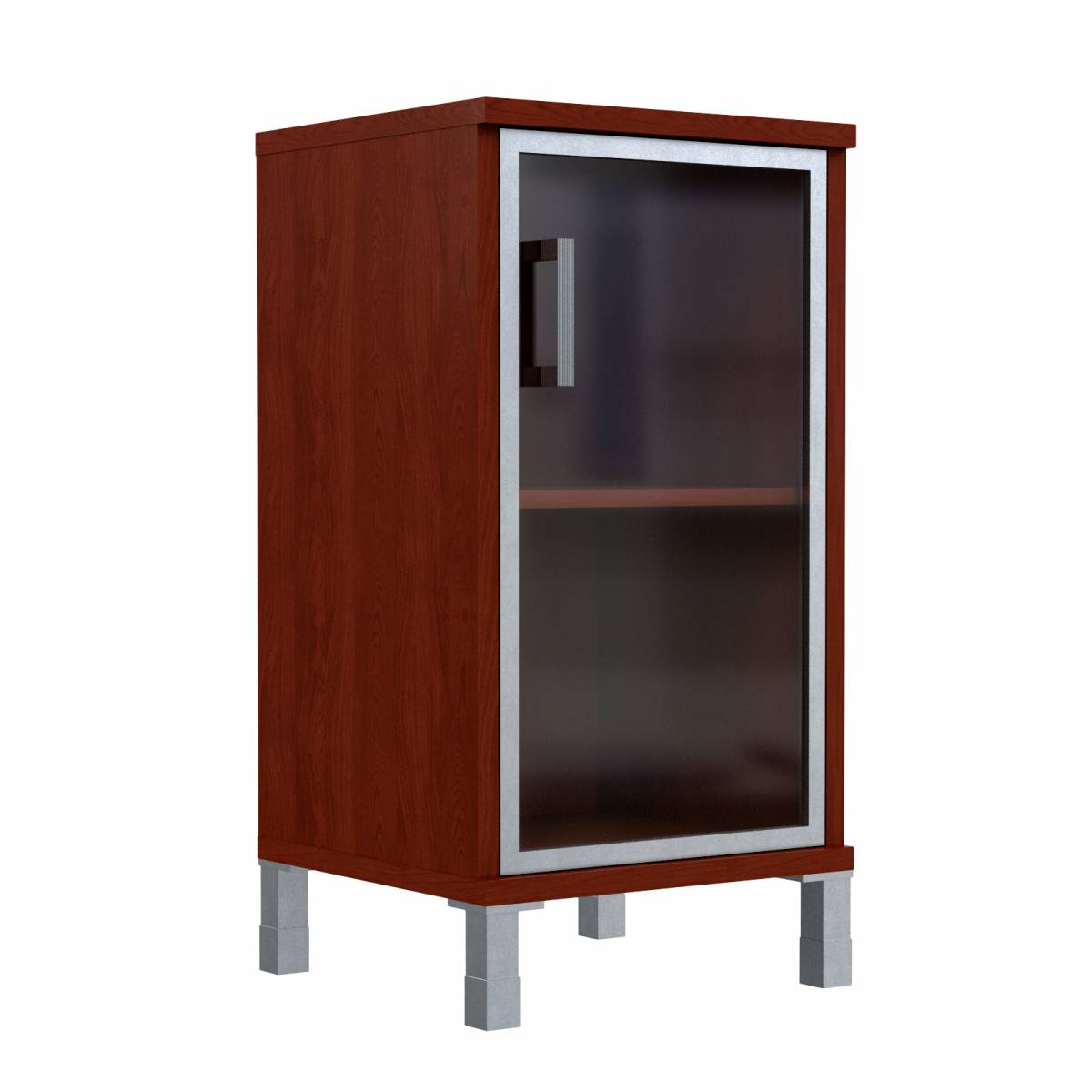 Шкаф-колонка низкая со стеклянной дверью в AL-рамке B 411.4(L) Бургунди 475х450х920